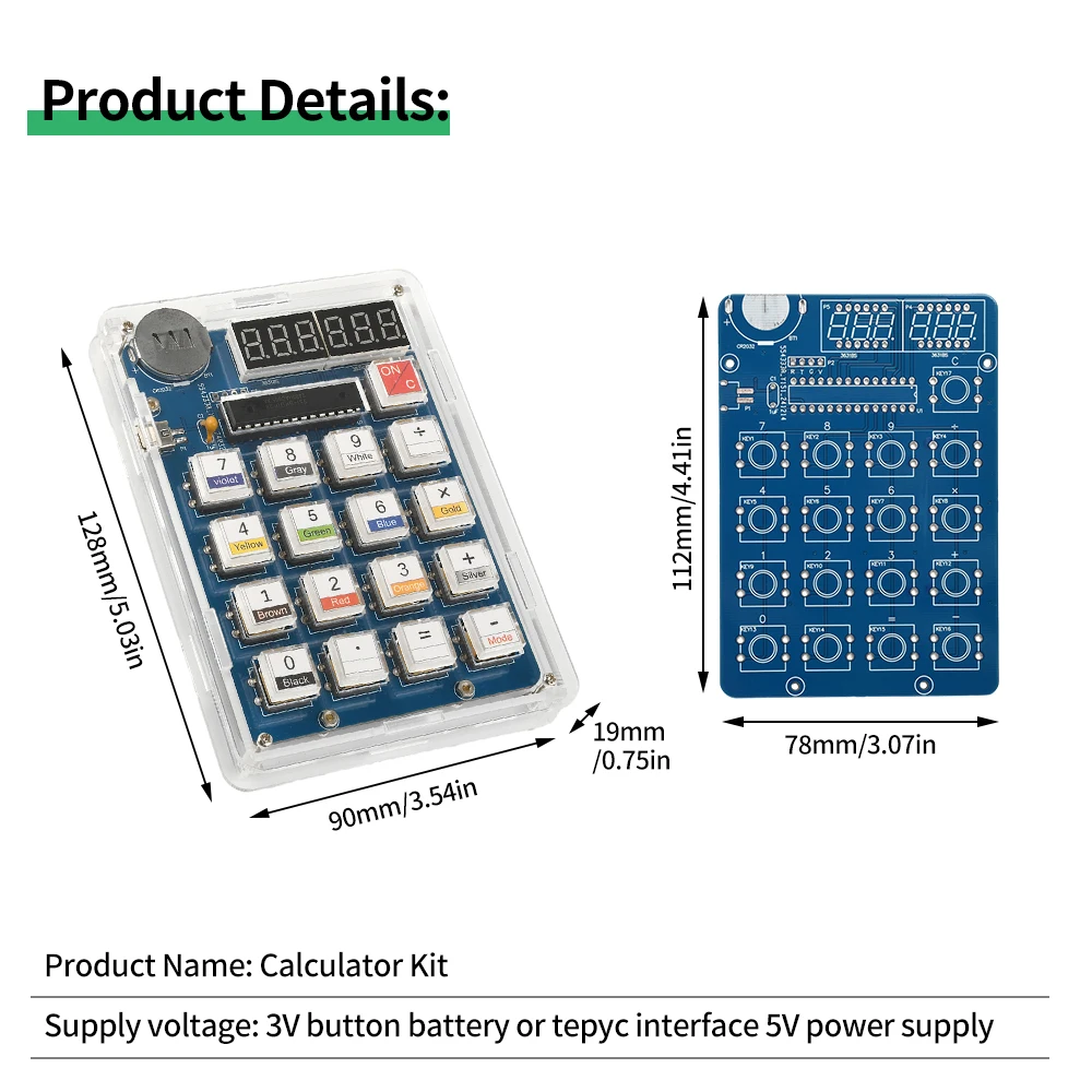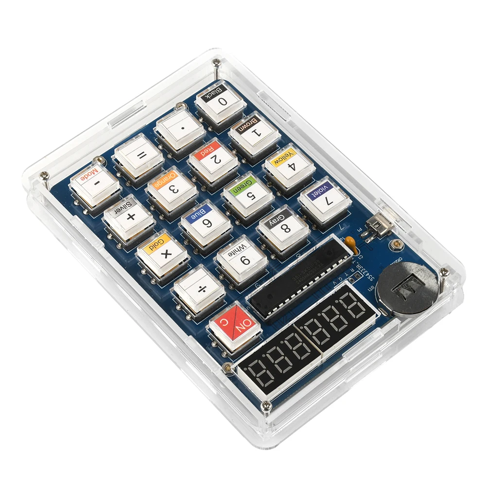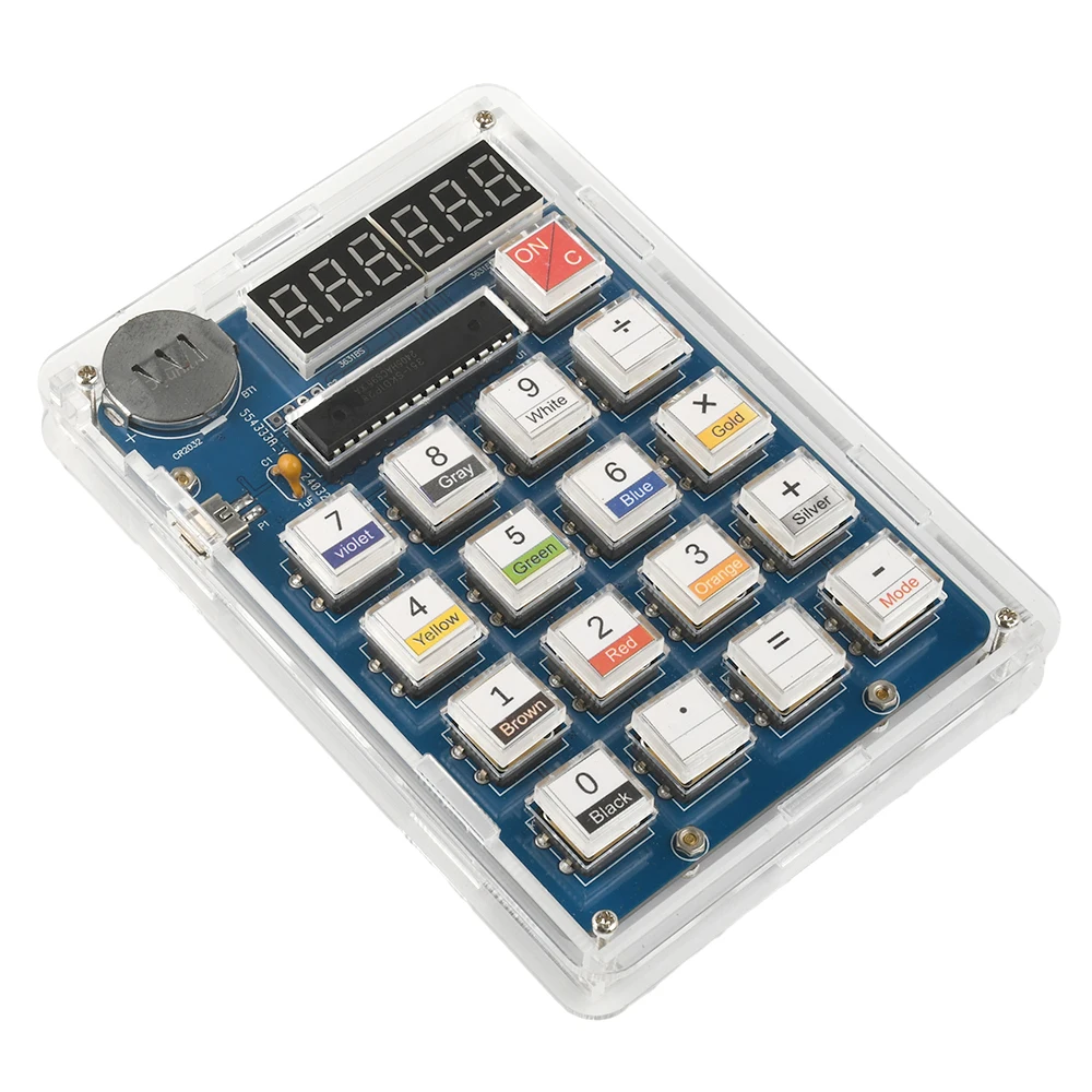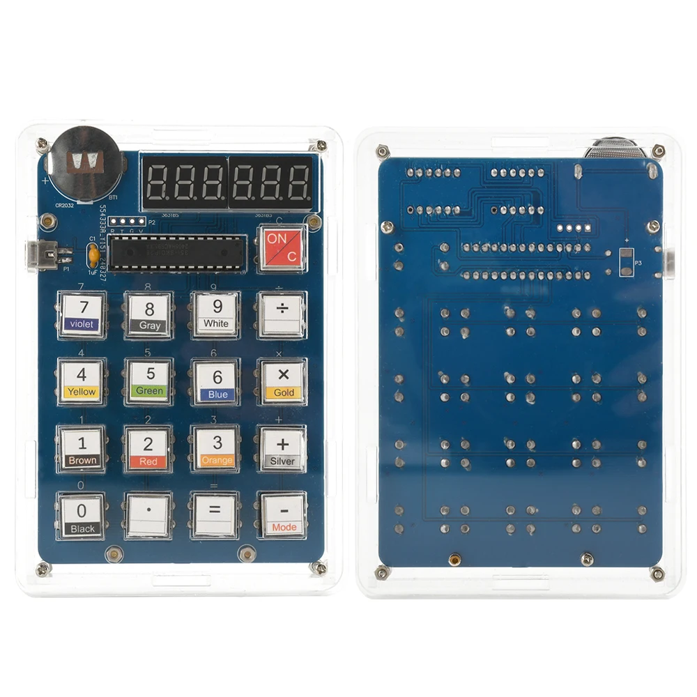 The 6-Digit Calculator DIY Soldering Kit is an exceptional educational tool designed for individuals interested in microcontroller training and electronics development. This kit provides a hands-on experience, allowing users to construct a fully operational calculator capable of executing fundamental arithmetic operations and resistance value conversions. With its clearly labeled PCB and straightforward assembly instructions, this kit is suitable for both beginners and experienced electronics enthusiasts, making it a valuable resource for educational settings and personal projects alike.