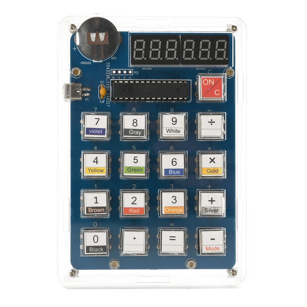This versatile calculator can be powered using a 3V button battery or a 5V USB connection, offering flexibility for various applications. Once assembled, users can effortlessly switch between different modes, including basic calculations and resistance value conversions, enhancing their understanding of electronic components. The elegant transparent acrylic casing not only showcases the intricate internal circuitry but also adds a modern touch to any workspace. Additionally, the energy-efficient automatic hibernation feature helps conserve battery life by putting the device into sleep mode during periods of inactivity.